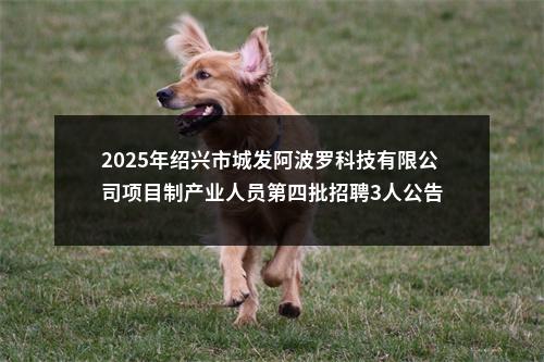 阿波罗公司共计招3人,招聘人数、具体岗位、资格条件等详见《绍兴市城发阿波罗科技有限公司2025年项目制产业人员第四批人员招聘需求表》(附件1)。