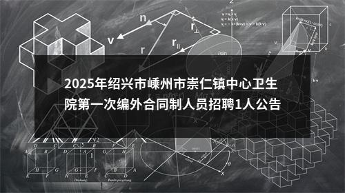 原标题:嵊州市崇仁镇中心卫生院2025年第一次编外合同制人员招聘公告